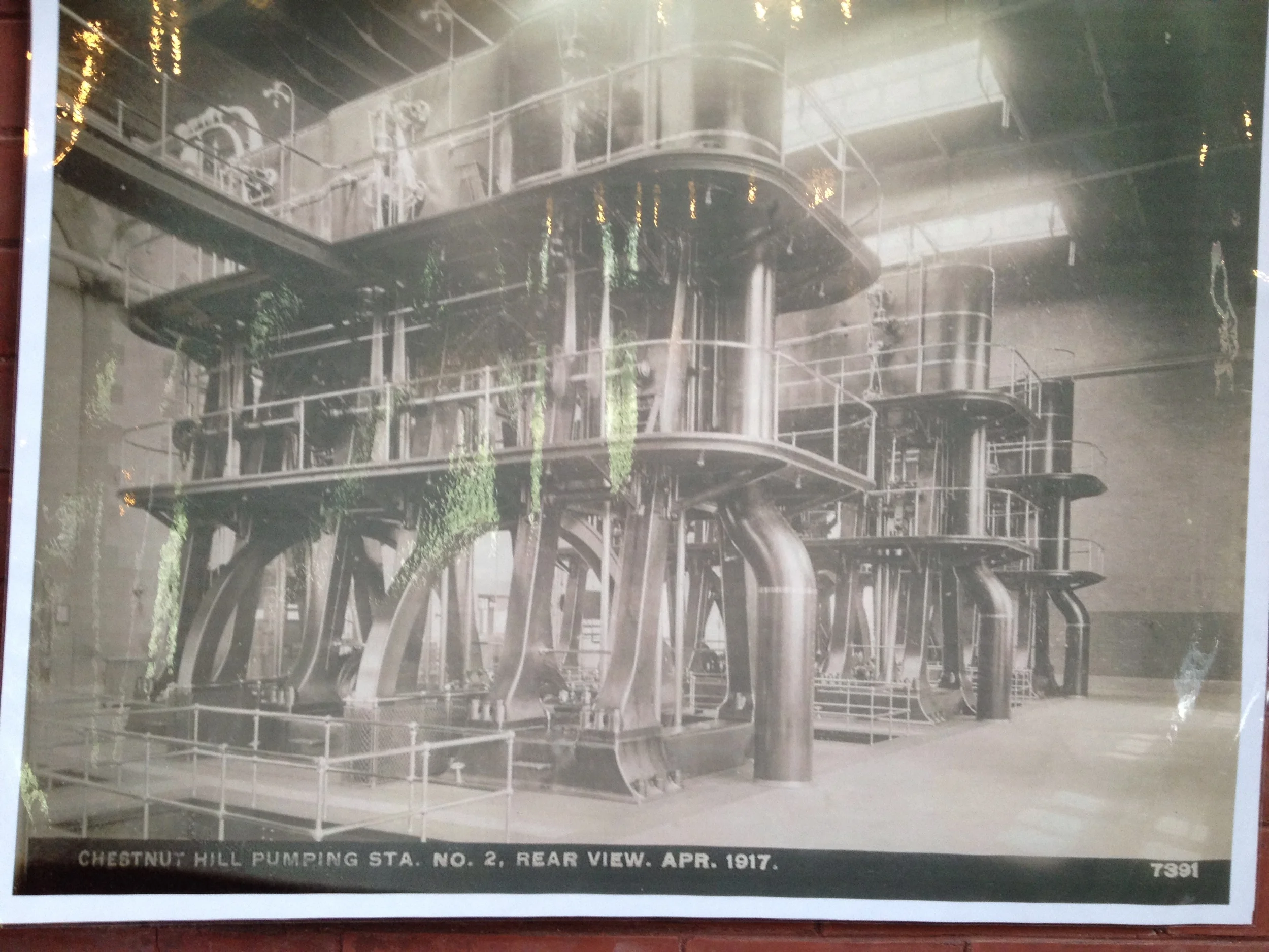The resultant wall of sound evokes that of the operational waterworks, three steam engines that worked in tandem to pump drinking water from the adjacent Chestnut Hill Reservoir through the entire city of Boston.