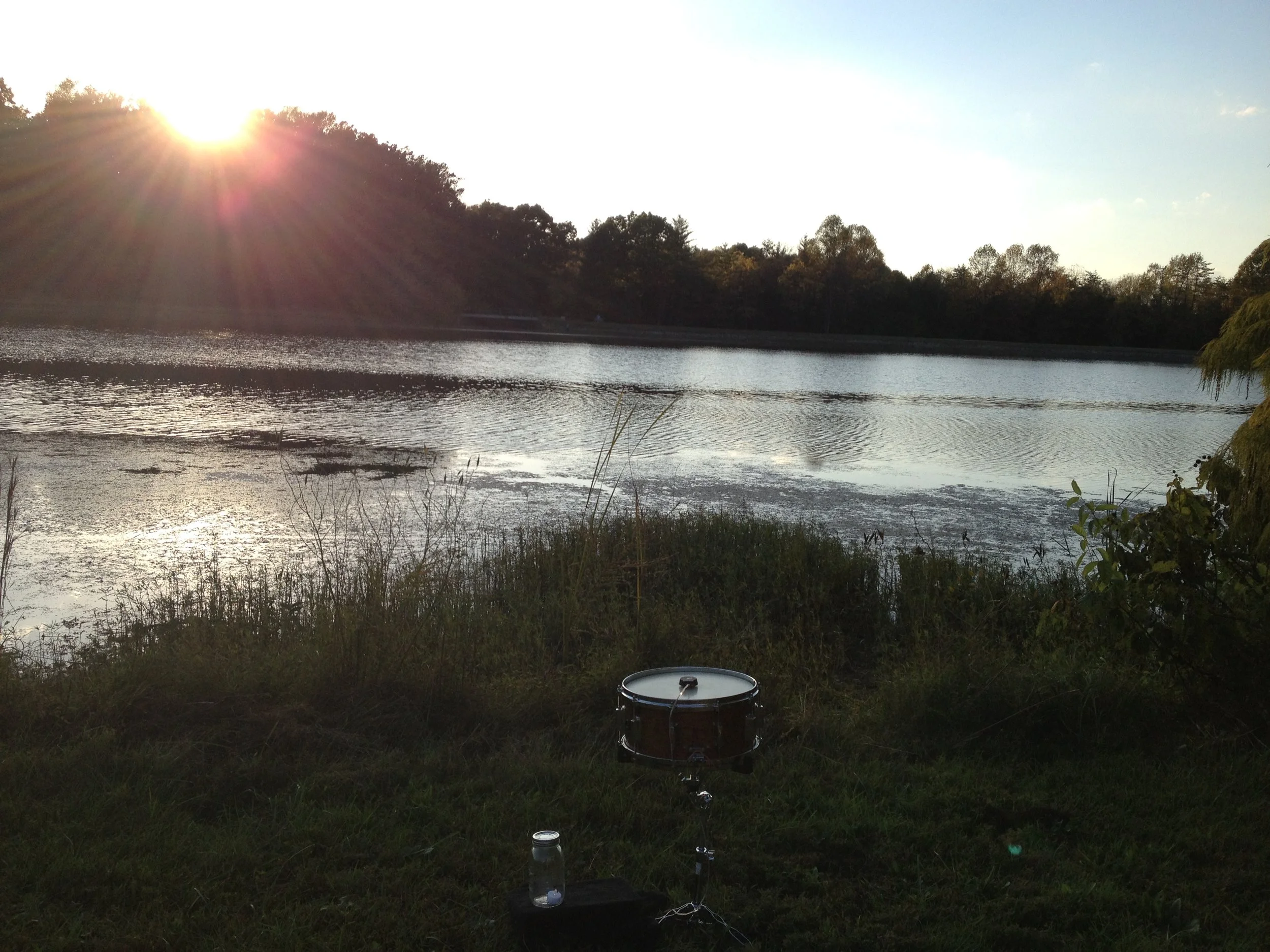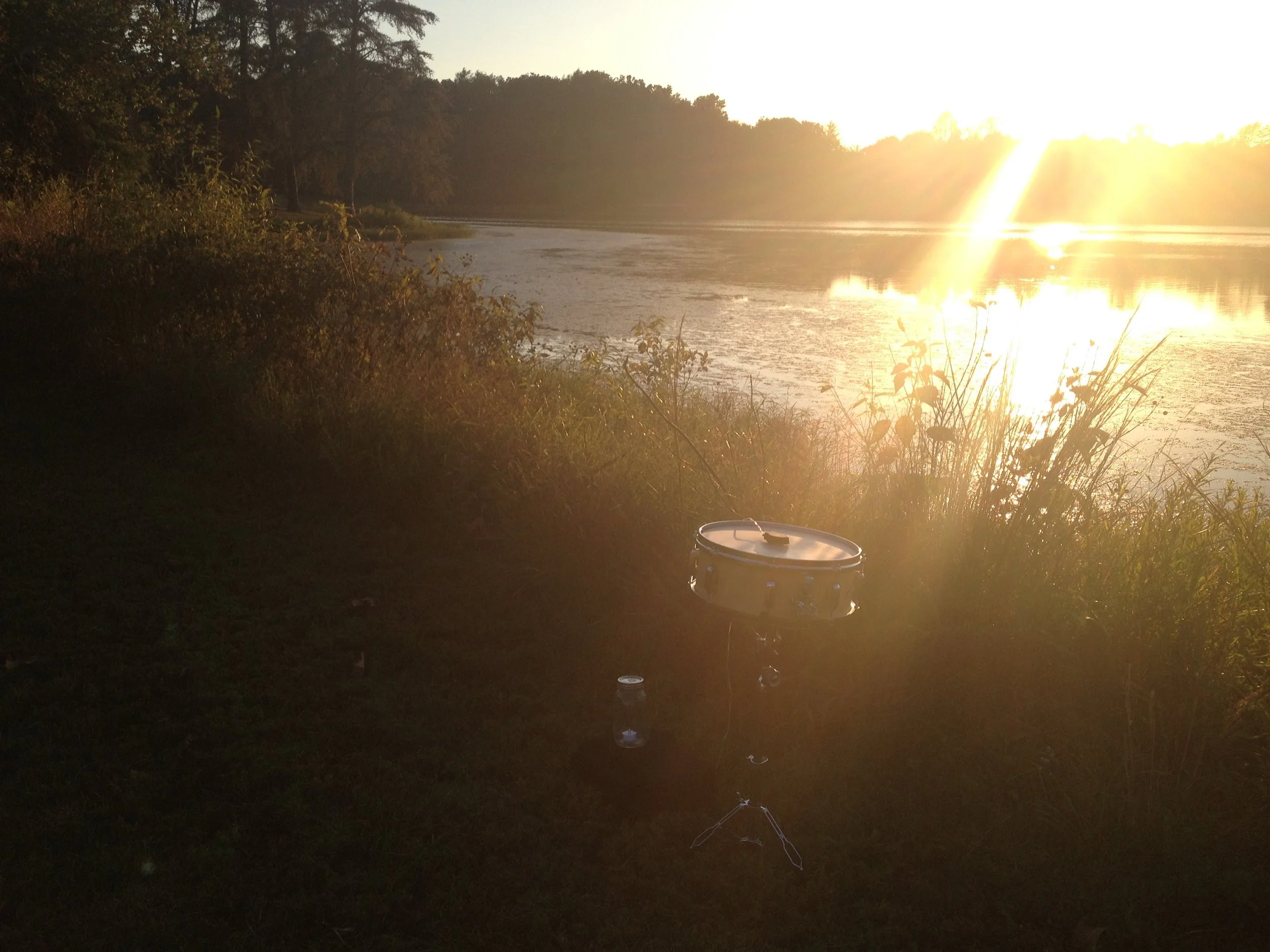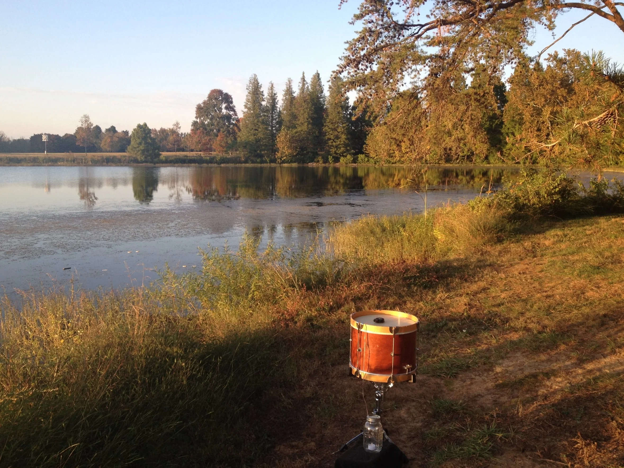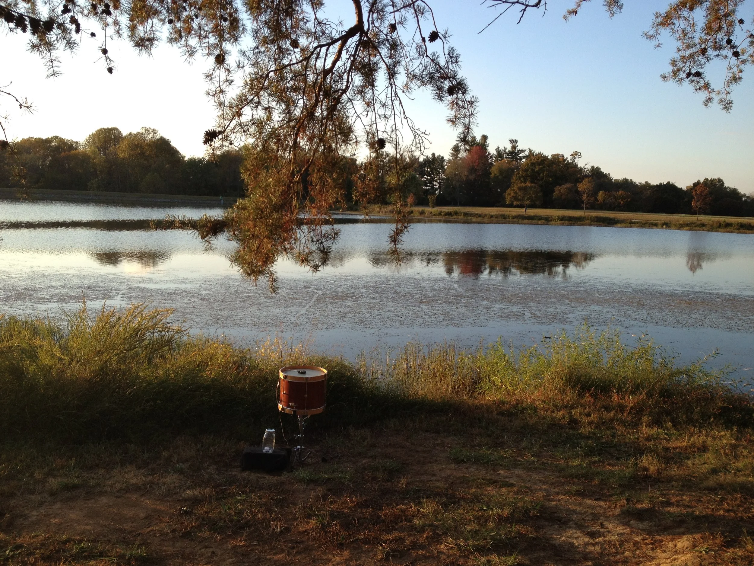 The staging points of the drums are linked by the consistency of their sound material, and when sounding together fade into an irregular droning texture, as different overtones collide, reinforce, and interfere with one another. At a distance, this texture fades into and blends with that of the natural soundscape generated by crickets, birds, and the nearby highway. At close range, the sound of an individual drum saturates its siting location.