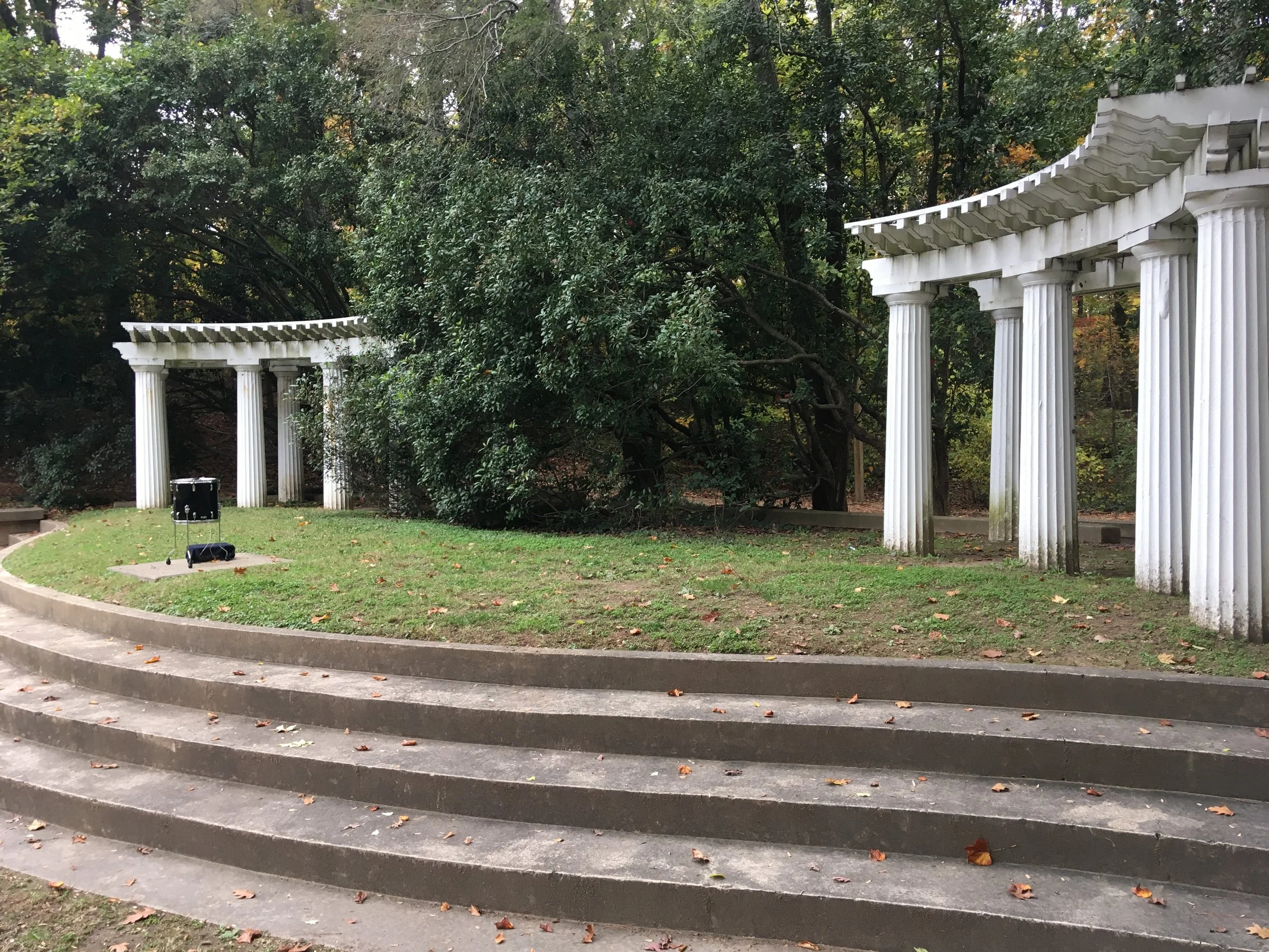 Arranged on November 3 around the hiking trails and common space near Westhampton Lake, such that an observer standing at one beacon can barely hear the sound of a neighbor. Arranged on November 4 within the Jenkins Greek Theatre, and placed with beacons positioned at 12 o'clock, 3 o'clock, 6 o'clock, and 9 o'clock, with respect to an observer standing in the center of the amphitheater facing the stage.